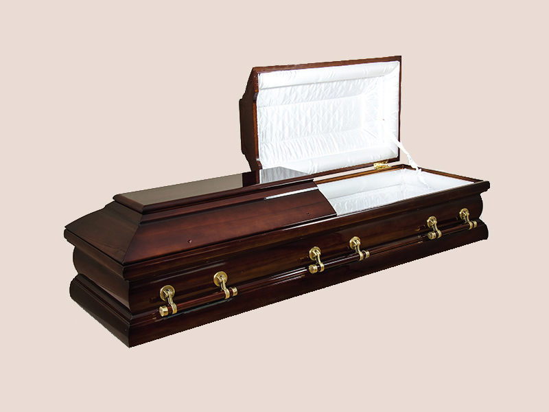 Acest pachet funerar pentru spital contine un sicriu model american ce face parte din gama de lux, echipat cu doua capace. Sicriul este confectionat din lemn masiv de tei, realizat in 4 colturi avand un finisaj lucios. Sicriul este complet echipat cu lenjerie de lux din saten ce contine burete incorporat, manere elegante de lemn, suruburi din gama de lux si crucifix ce ii ofera un plus de eleganta.